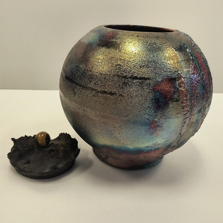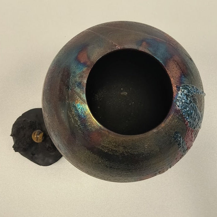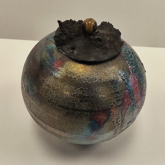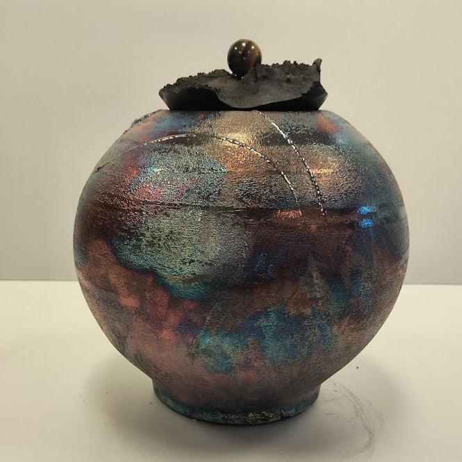 This is a Raku styled pottery created by David Emerson Eglese.