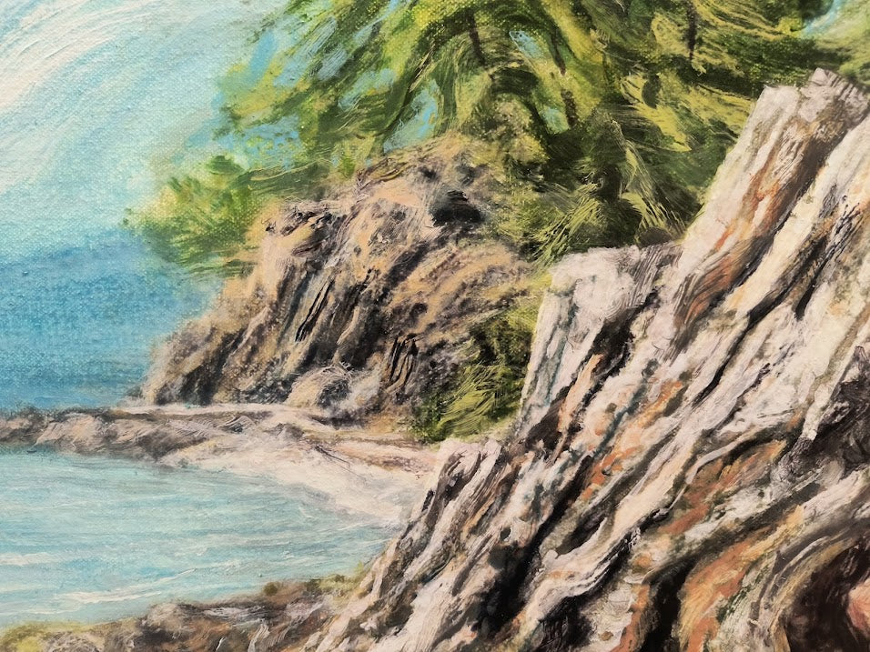 Overall, this scene invites the viewer to appreciate the quiet, enduring beauty of natural landscapes and to reflect on the passage of time through natural elements. The expressive brushwork and choice of earthy palette enhance the visceral connection to this wild, peaceful place.